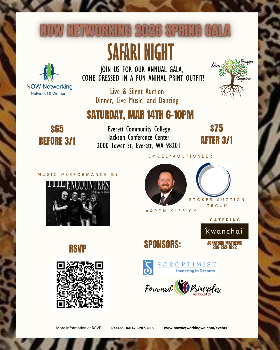 This year our Gala will be Mar 14th, 2026 6pm at Everett Community College in the Jackson Conference Center. We are excited to have a live performance by The Encounters with Dancing and to close out our Gala. We have many fun activities planned, you won’t want to miss it!